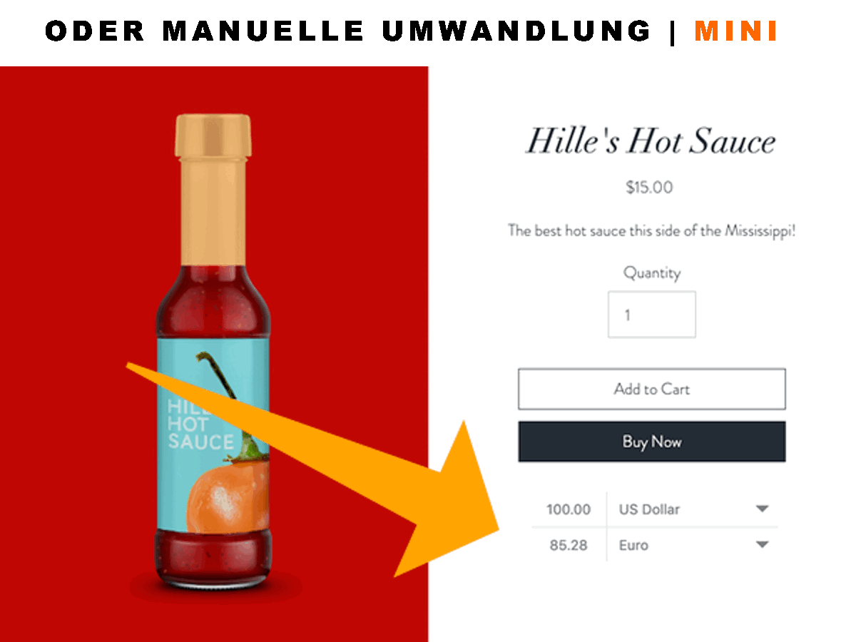 Mit dem Währungsumrechner können Ihre Kunden Ihre Preise ganz einfach in ihre lokale Währung umrechnen.