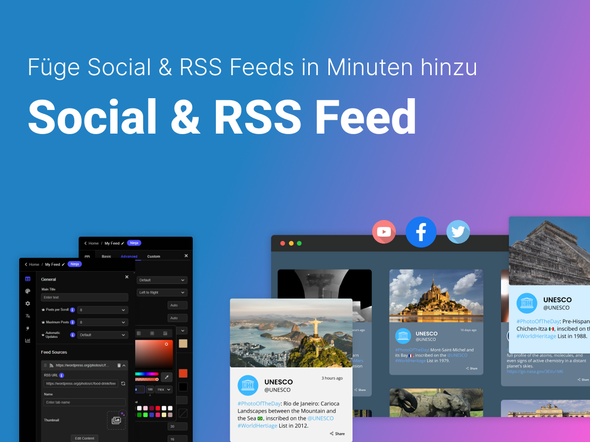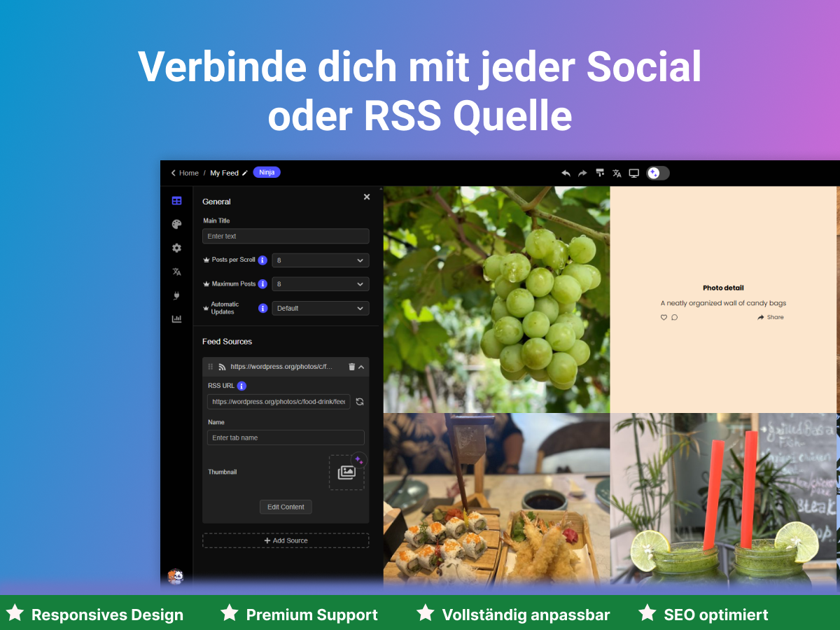 Ob du deine neuesten Social-Media-Aktivitäten hervorheben oder deine Website mit aktuellen Inhalten aus Blogs und Nachrichtenseiten bereichern möchtest – diese App macht es möglich.