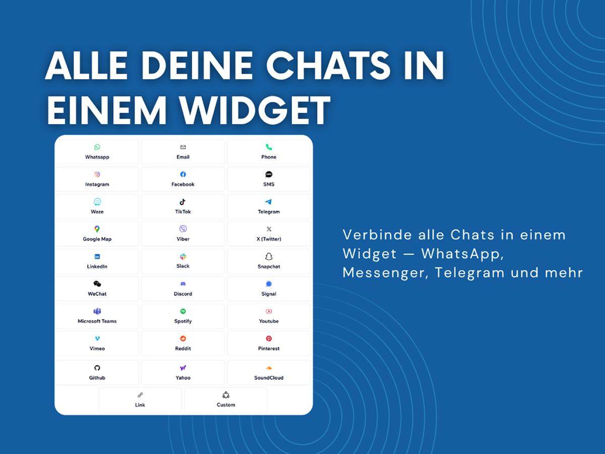 Biete mehrere Chat-Optionen oder füge eigene Links hinzu, damit Besucher selbst wählen können, wie sie dich kontaktieren.