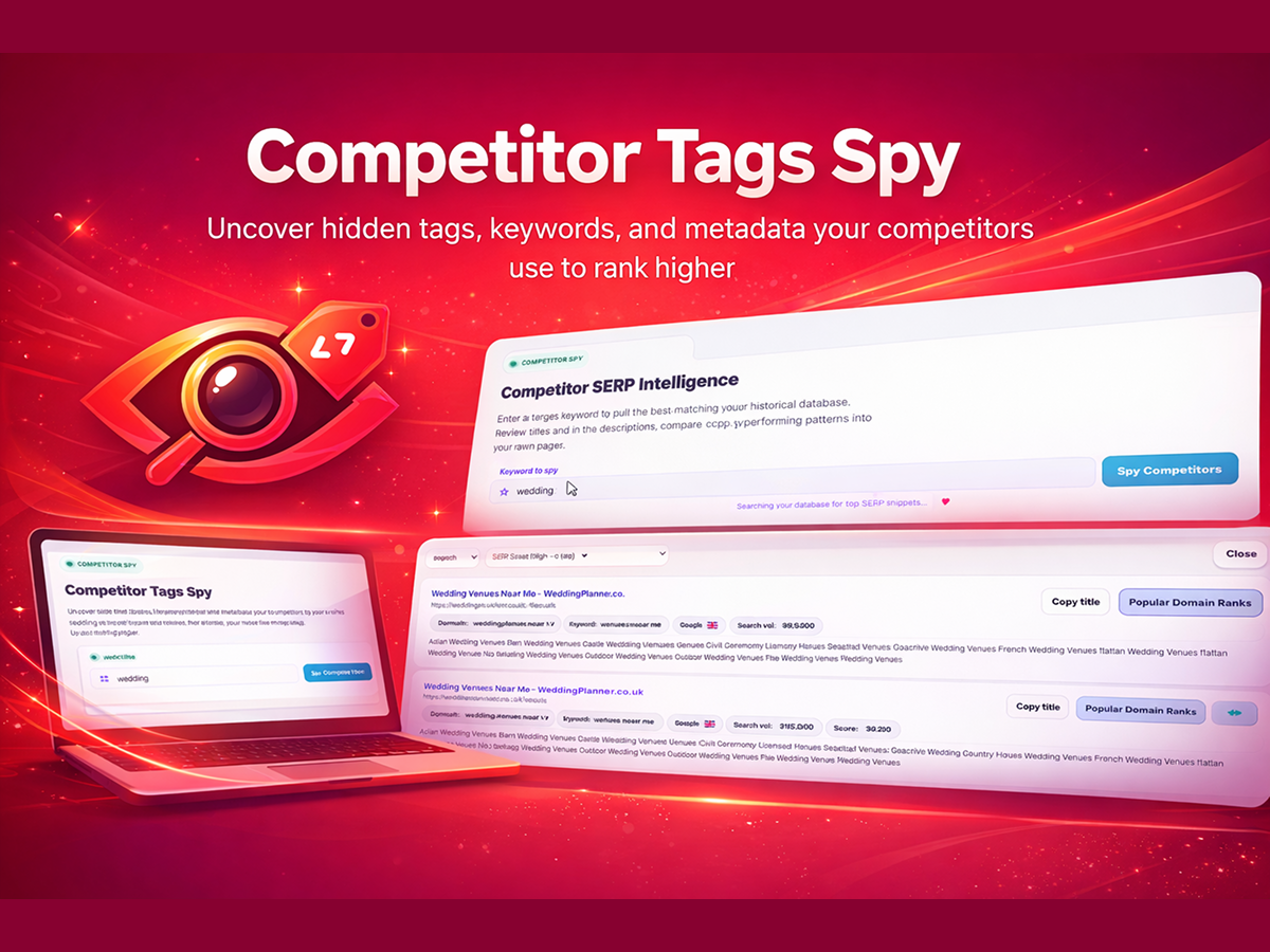 Competitor Tags Spy is a powerful SEO intelligence tool designed to help you uncover the hidden tags, keywords, and metadata your competitors are using to rank. By analyzing the behind-the-scenes structure of any website, this tool gives you instant access to title tags, meta descriptions, header keywords, alt texts, and other valuable SEO signals. With these insights, you can refine your own strategy, fill content gaps, and identify opportunities to outperform similar businesses in search results. Competitor Tags Spy is perfect for marketers, content creators, and business owners who want a faster, smarter way to understand what makes top-ranking pages successful. The clean interface and detailed reporting make it easy to compare SEO elements side by side, track patterns, and build data-driven strategies that improve visibility and organic traffic. Whether you're optimizing existing pages or planning new content, this tool provides the clarity and competitive insight you need to stay ahead.