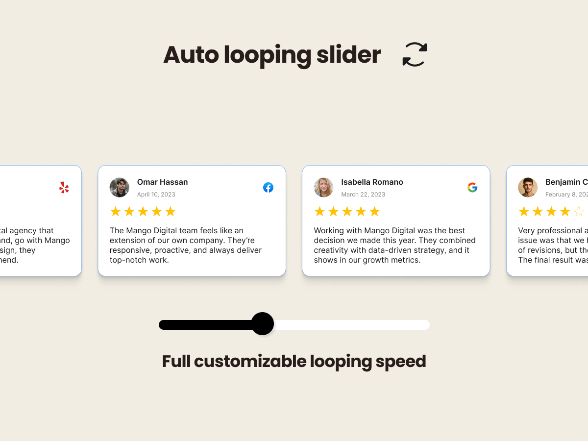 Beautifully designed and customizable review slider, grid, and badge that integrates anywhere on your website